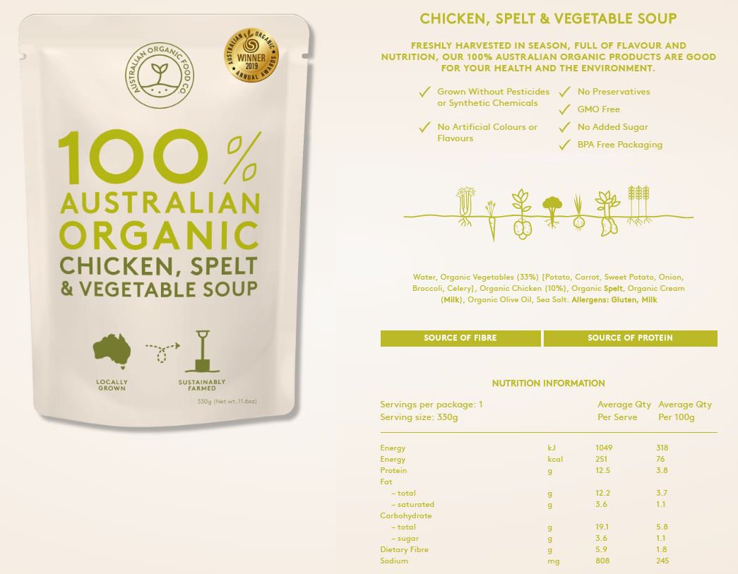 Australian Organic Food Co - Organic Soup - Chicken, Spelt and Vegetable