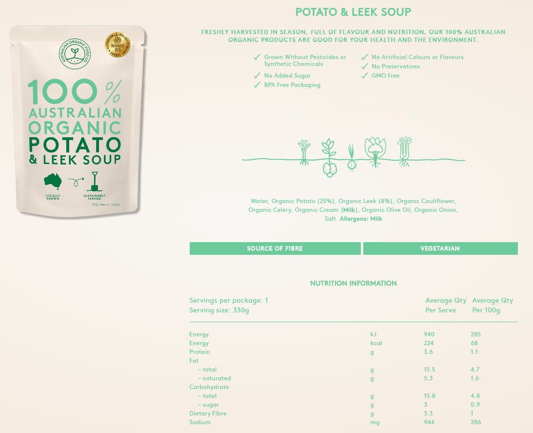 Australian Organic Food Co - Organic Soup - Potato & Leek